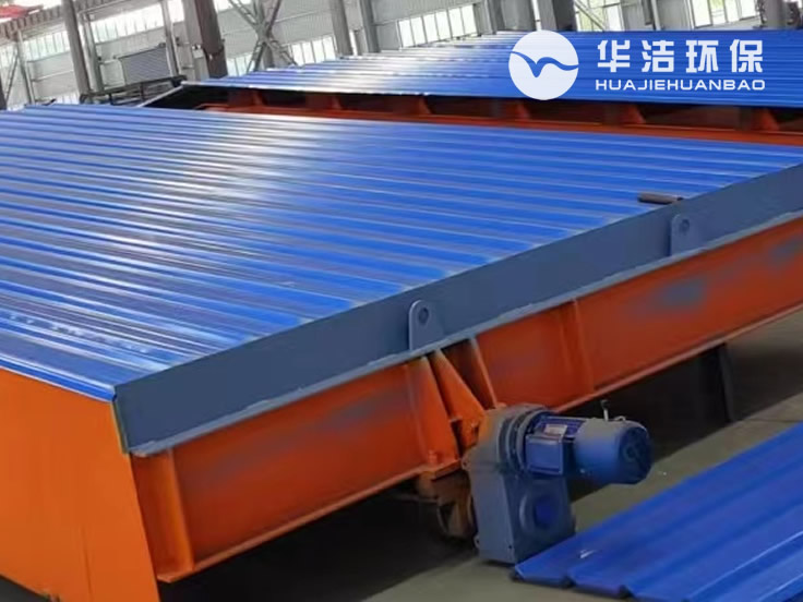 具有工程造價低、施工周期短、防震性能好等特點,廣泛應用在工業(yè)廠房、倉庫、機場候機樓等領(lǐng)域,目前鋼結(jié)構(gòu)屋頂通常是雙坡面屋頂,現(xiàn)有的技術(shù)如公開號為cn204781532u的專利申請文件中公開的一種可移動式鋼結(jié)構(gòu)屋頂,包括行走梁、電動運行機構(gòu)、桁架梁、彩鋼瓦板、緩沖器、夾軌器、軌道,所述桁架梁和彩鋼瓦板連接,并固定在行走梁上,在軌道上運行,所述緩沖器、夾軌器安裝在行走梁上。